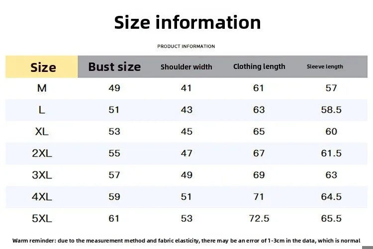 | 5XL | 61 | 53 | 72.5 | 65.5 |