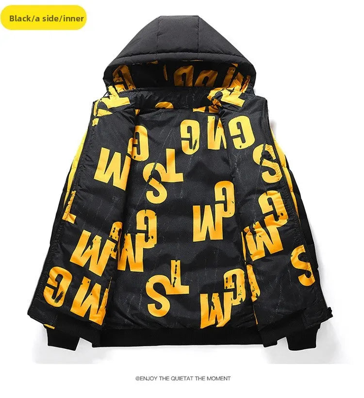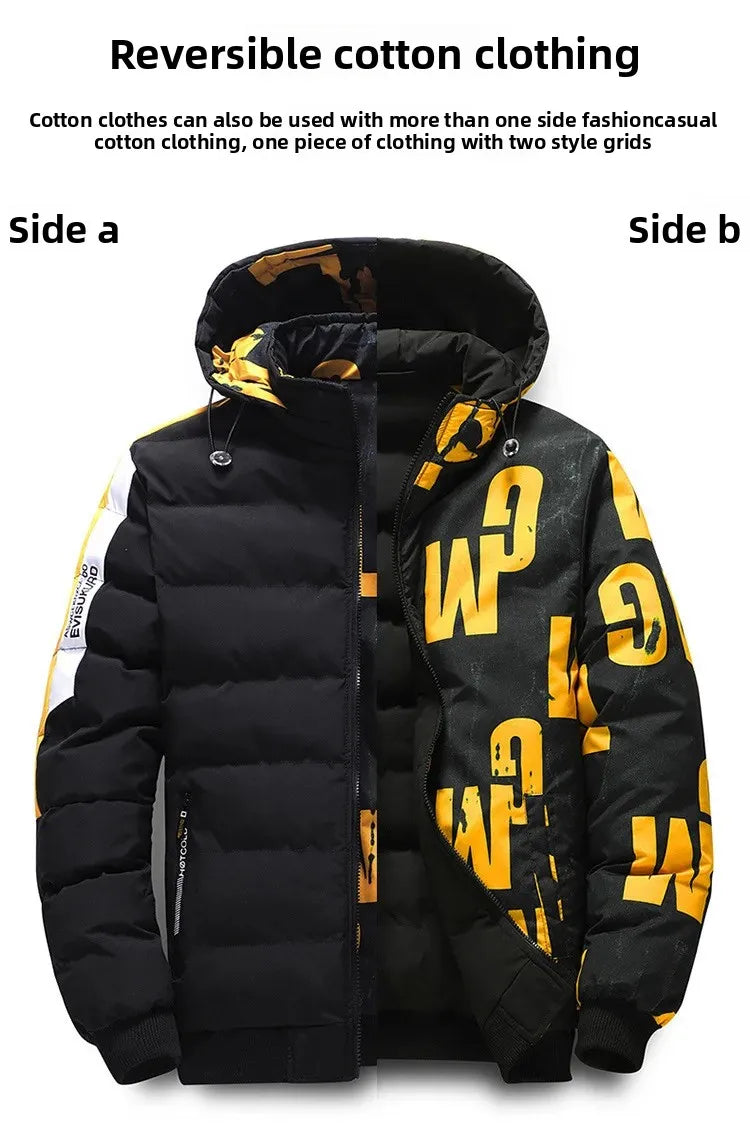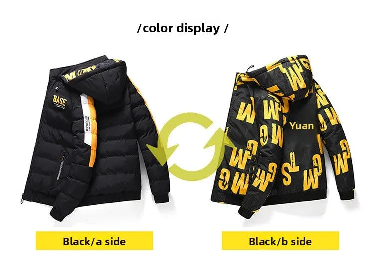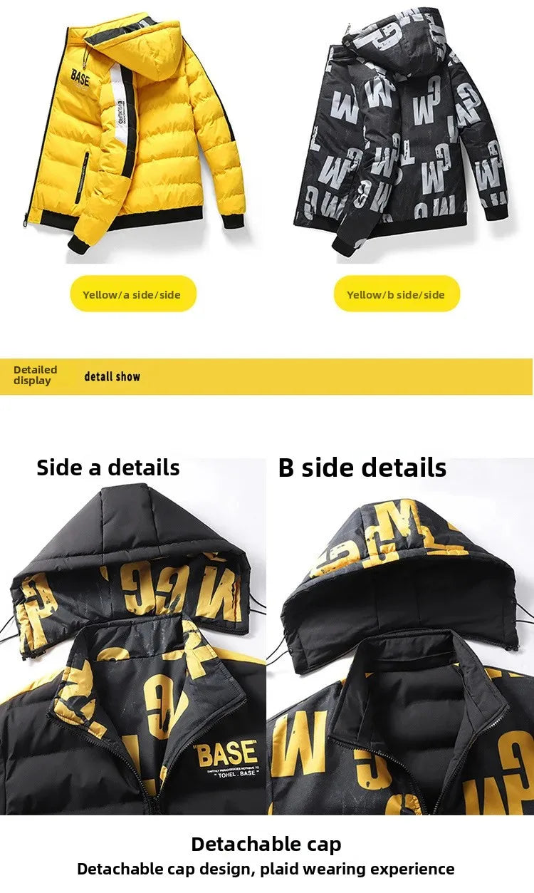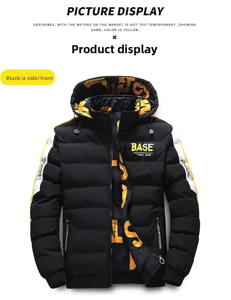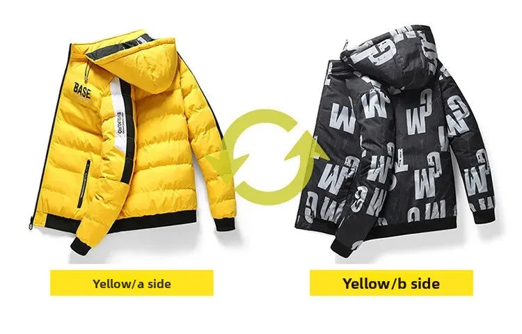🧥 Dwustronna Kurtka Zimowa Męska BASE - Stylowa i Wszechstronna (Czarna/Żółta)